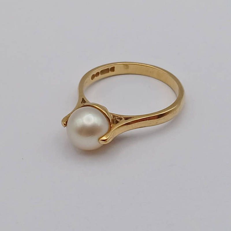 9ct gold pearl set ring, 2.4 grams, ring size l
