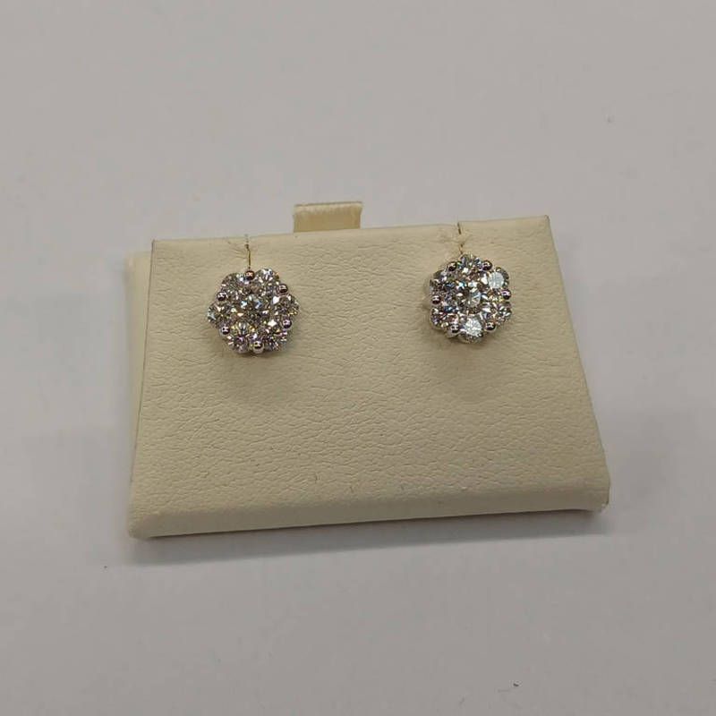 Pair 18ct gold diamond cluster ear studs, the brilliant cut diamonds approx 0.9 carats in total