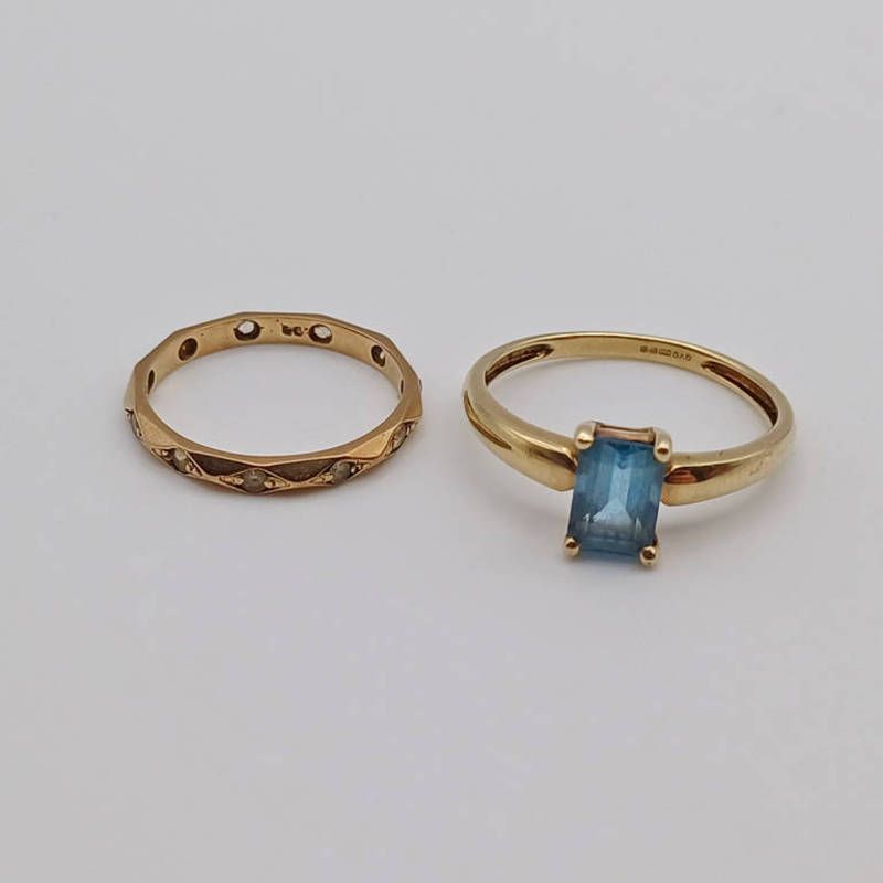 9ct gold gem set ring, 2 grams, ring size r & gem set eternity ring 1.5 grams m 1/2