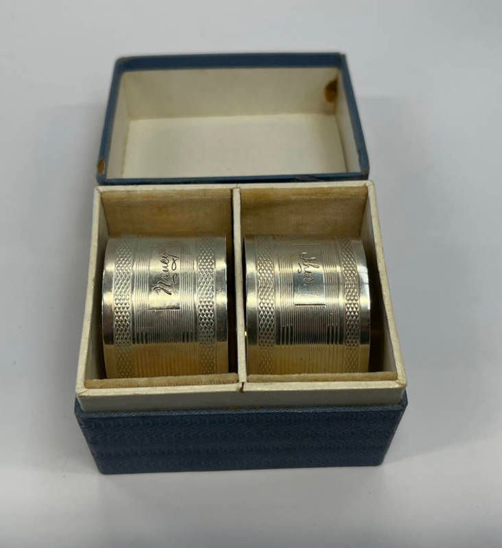 Boxed pair silver napkin rings with engine turned decoration, birmingham 1936 - 60 g