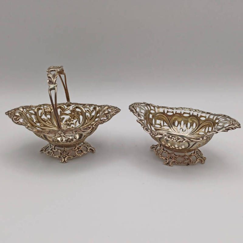 Silver bon bon basket, birmingham 1918 with swing handle & silver bon bon dish, birmingham 1918 - 75 grams total