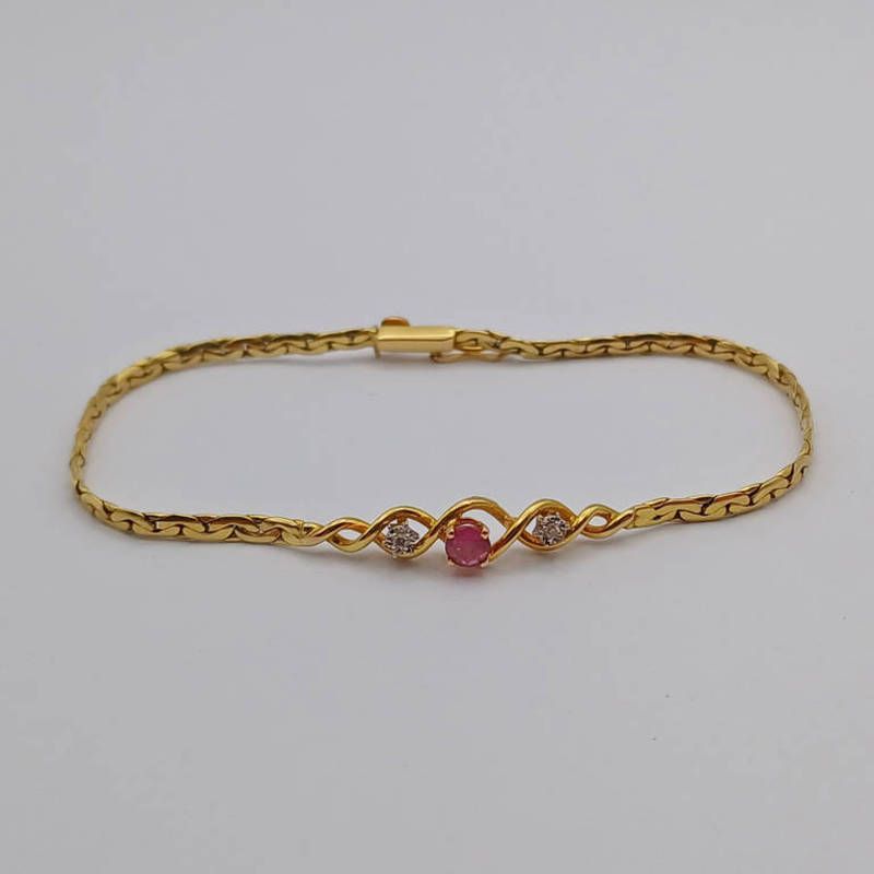 9ct gold ruby & diamond bracelet - 4.6 grams. length 18 cms
