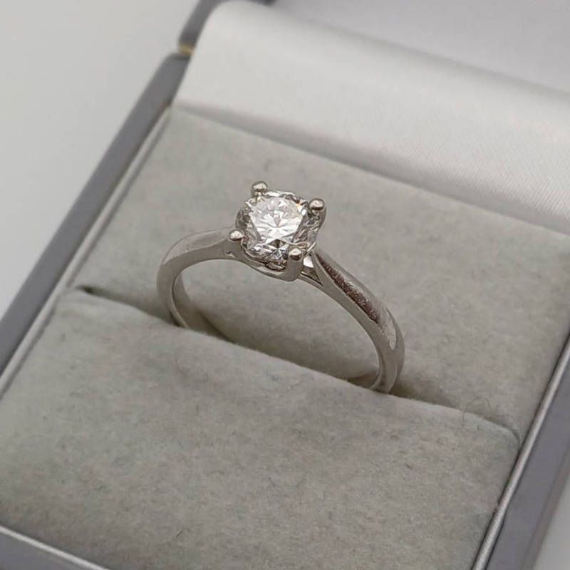 Platinum set diamond single stone ring, the round brilliant cut diamond approx 0.80 carats. approx colour, approx clarity si2 with igi certificate no 138498385 -ring size m