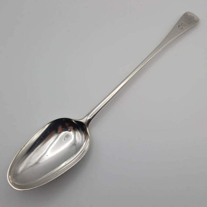 George iii silver serving spoon by langlands & robertson, newcastle 1778, 94g