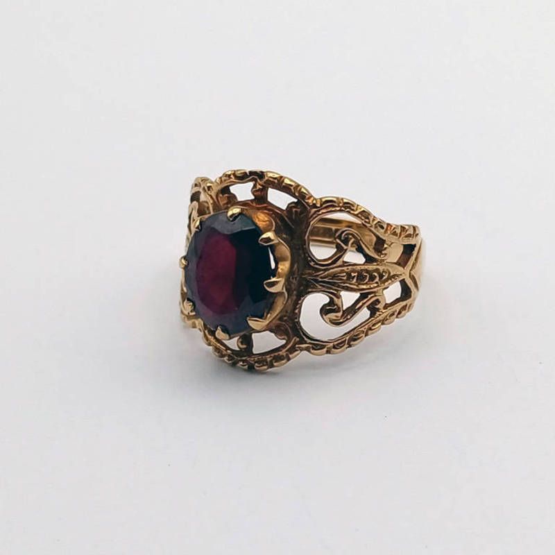 9ct gold oval gem set ring with decorative mount - 3.2 grams, ring size n