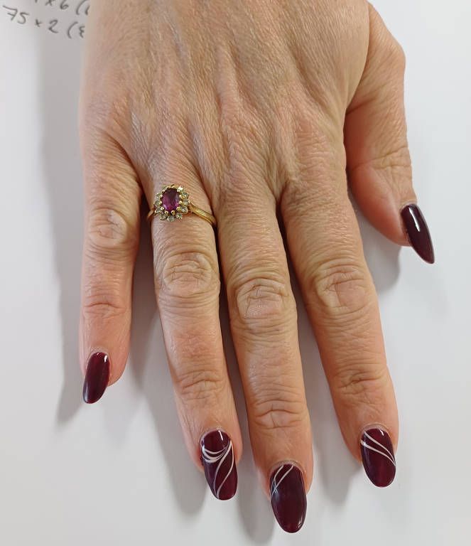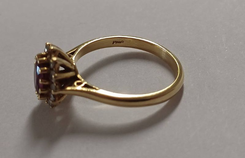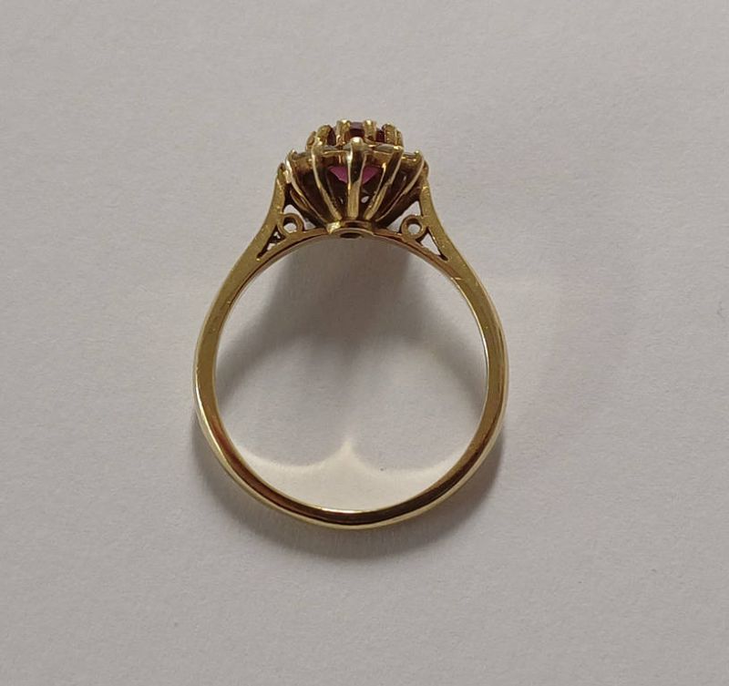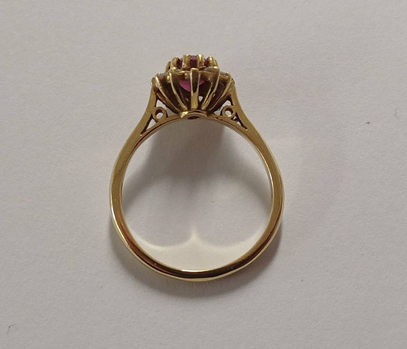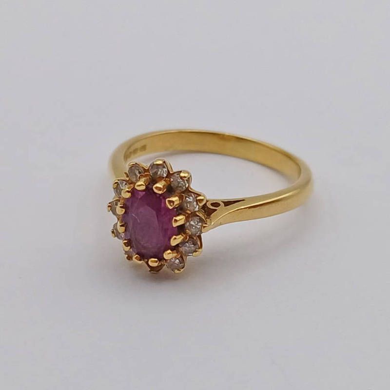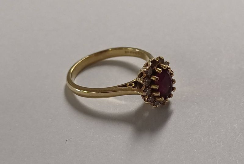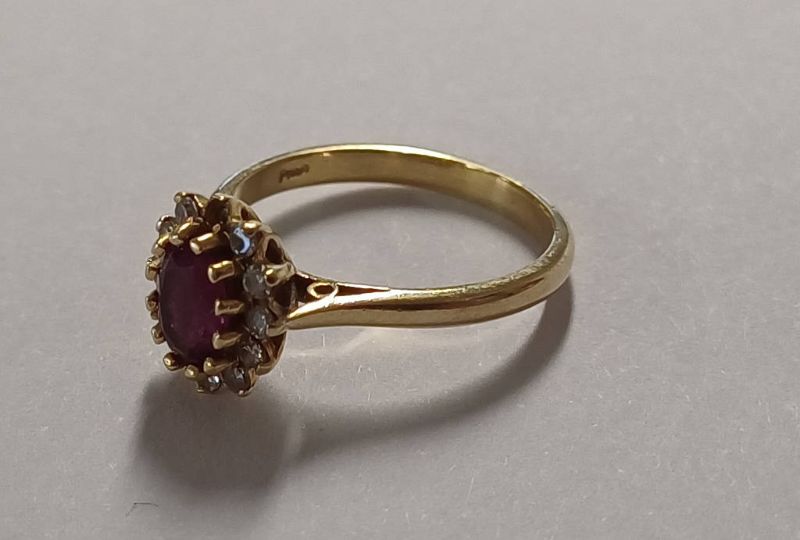 18ct gold ruby & diamond set cluster ring, 4.3 grams. ring size o
