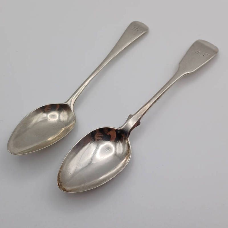 2 scottish silver teaspoons, one by william jamieson aberdeen. 31g