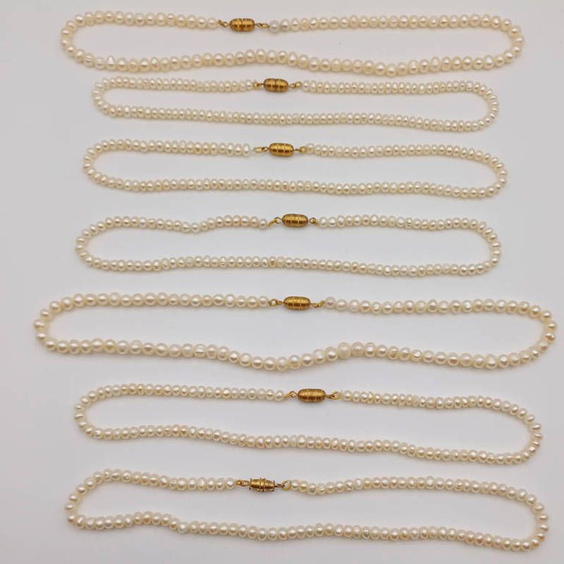5 cultured pearl necklaces. the length 38 cms & 2 cultured pearl necklaces. length 44 cms