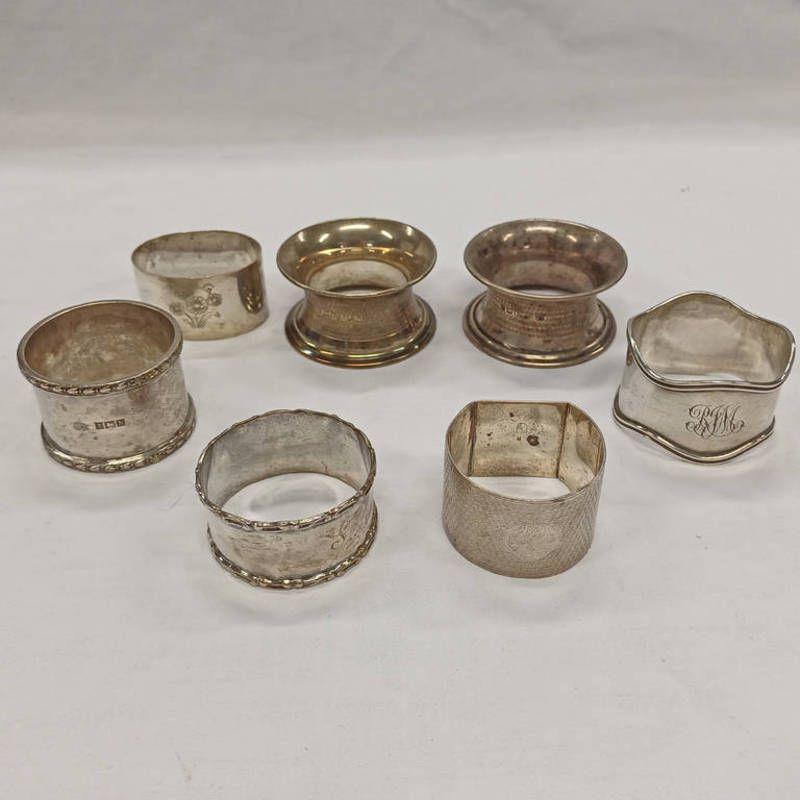 7 silver napkin rings from various makers & dates. 203g