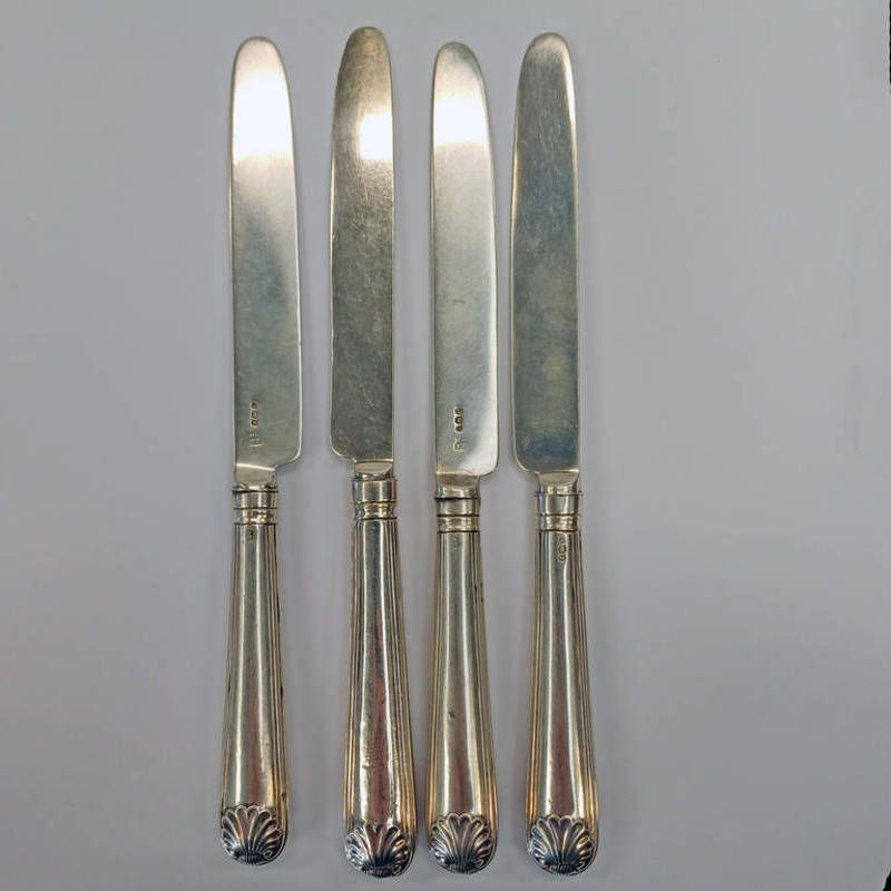 4 georgian silver knives, the blades hallmarked london 1813,, handles hallmarked london 1817, weight 253g