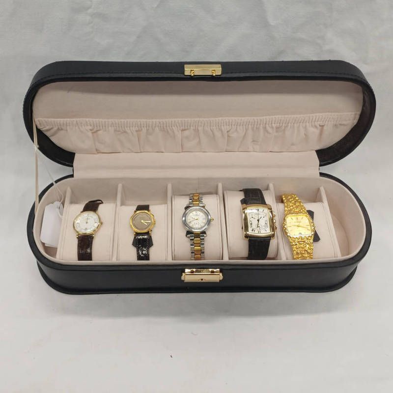 5 wrist watches, rotary raymond , weil, eterna fatiera, klaus kobec in fitted case