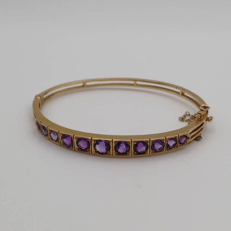9ct gold amethyst set bangle - 6.5 cms inner width 12.5 grams