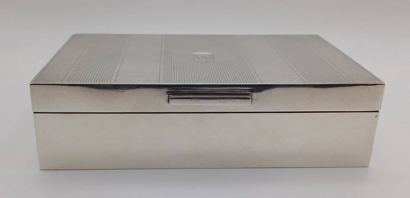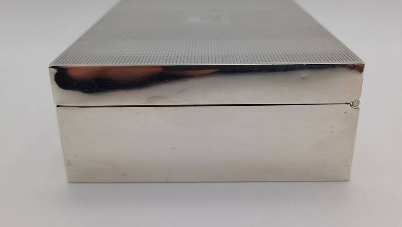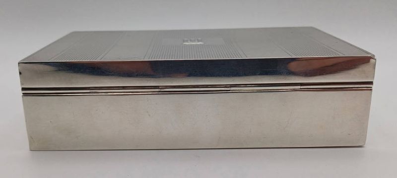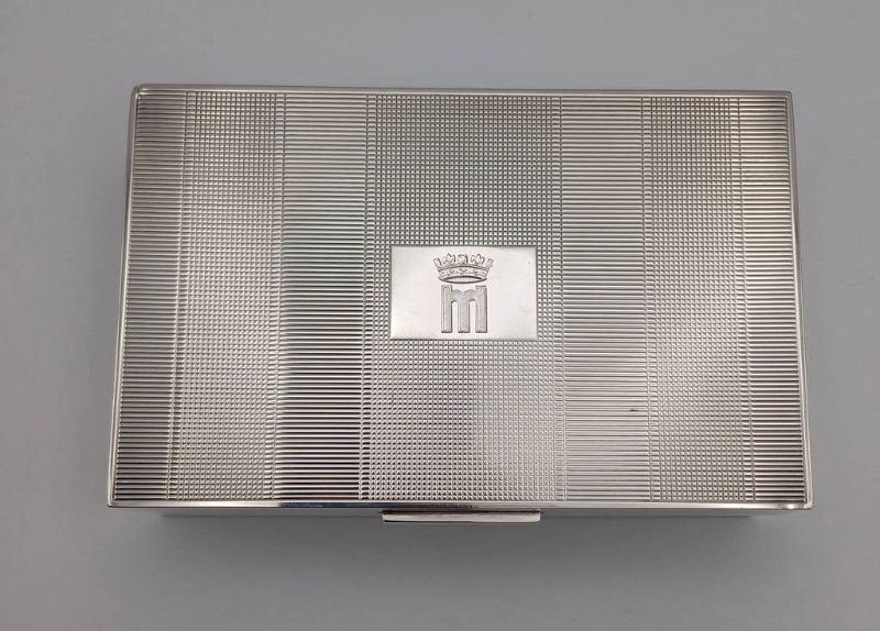 Royal provenance: silver cigarette box with royal cypher of princess marina, mother of the duke of kent. hallmarked padgett & braham ltd, london 1939 - 14cm long the box was given in the 1940's to john gerrie, an ent surgeon after he had removed the tonsils in an emergency from her son, the duke of kent, as a child on the kitchen table at birkhall on the balmoral estate, aberdeenshire.