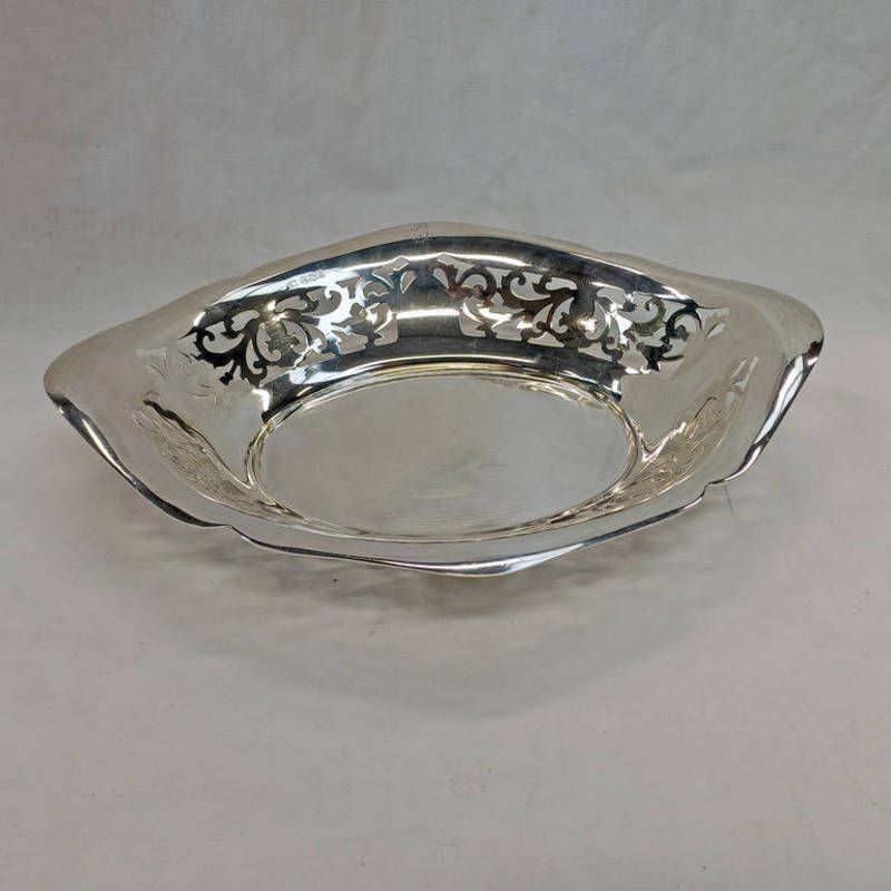 Silver fruit dish with pierced decoration, sheffield 1924, length 28cm, weight 283g