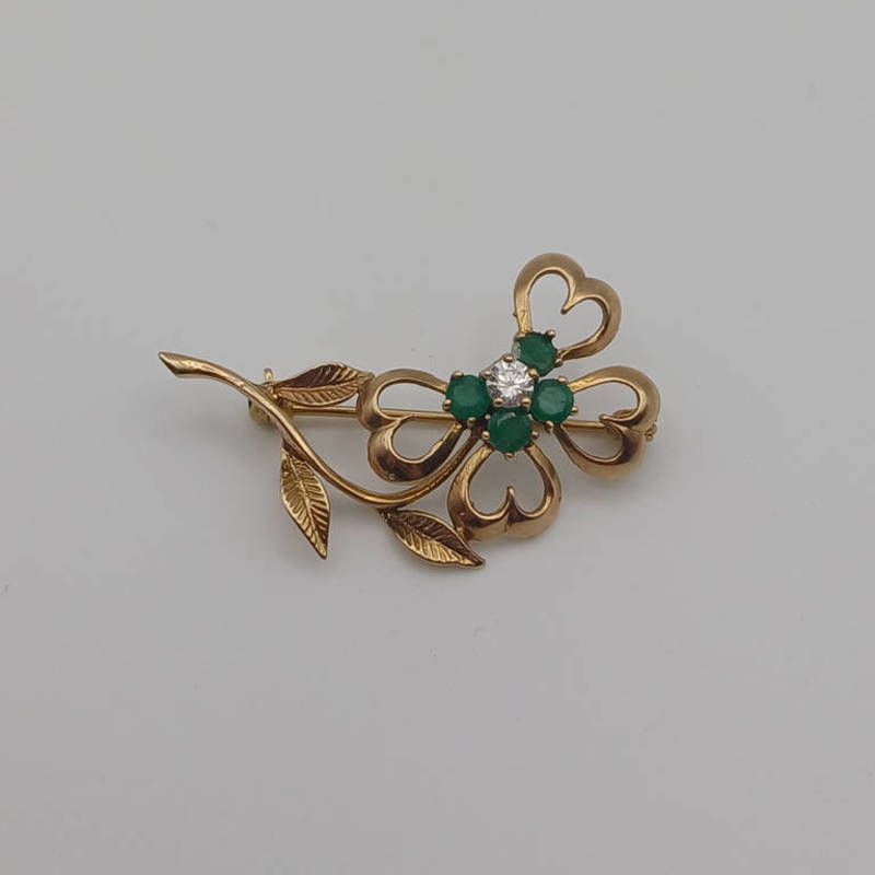9ct gold gem set floral spray brooch - 3.2g, as found