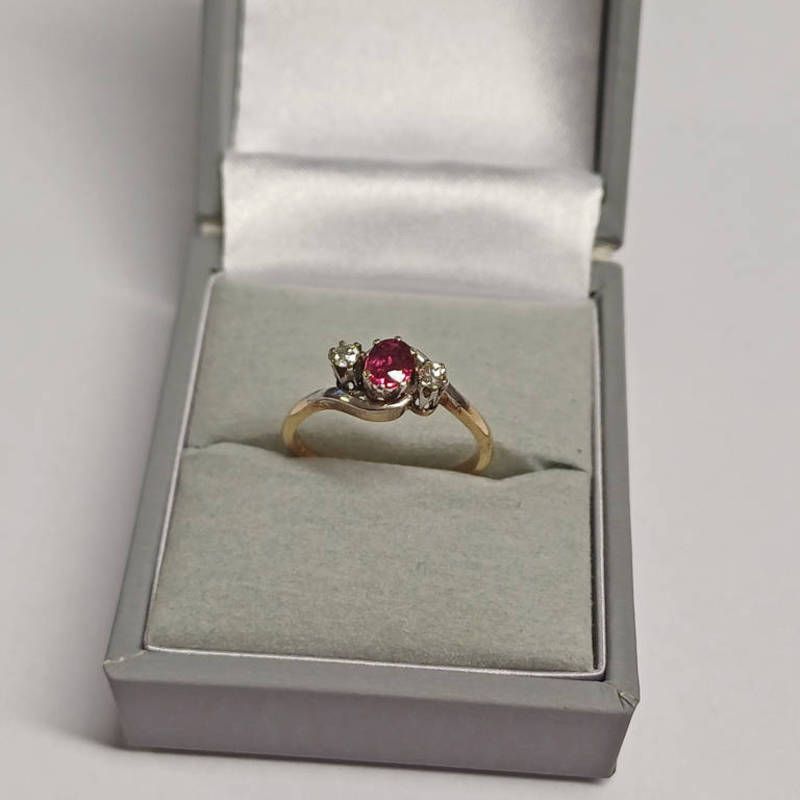 18ct gold ruby & diamond 3-stone twist ring - 3.0g, ring size n