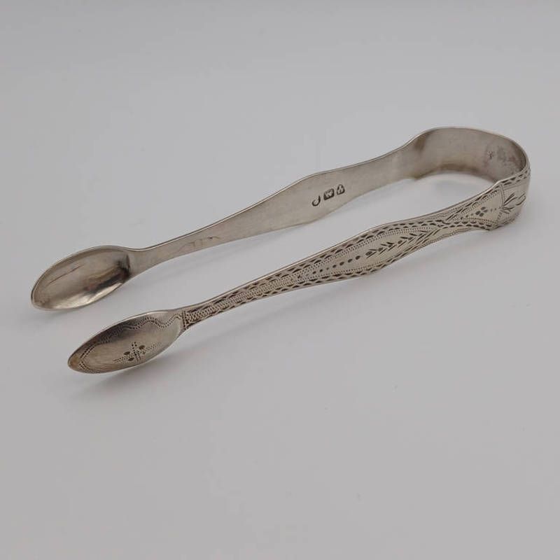 Pair of georgian silver bright cut sugar tongs by john robertson ii & john walton, newcastle circa 1815