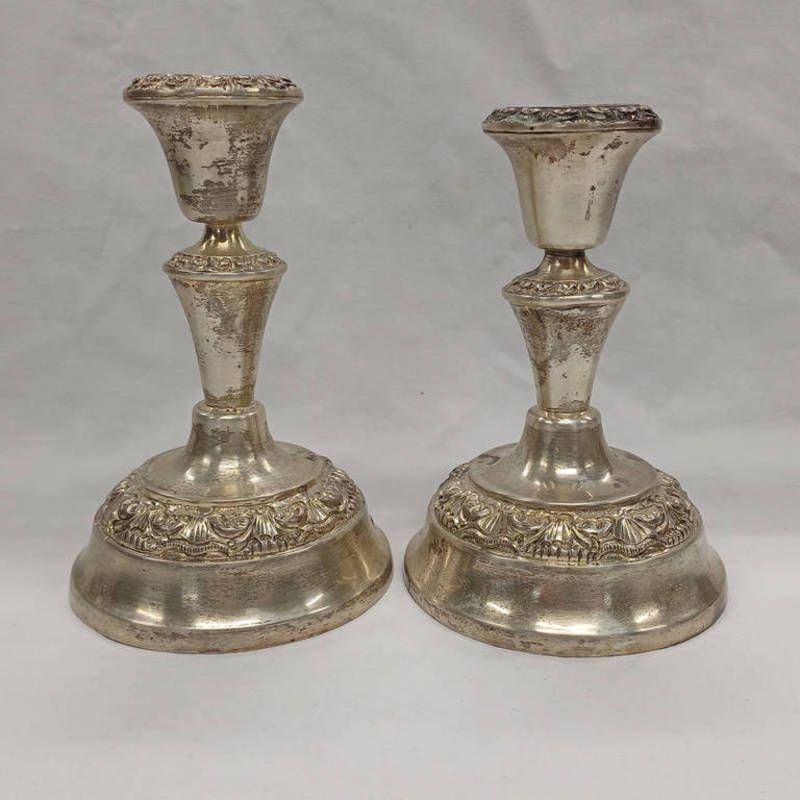Pair of white metal candlesticks, stamped silver - weight 365 grams (not loaded)