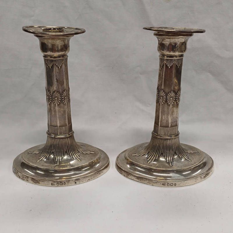 Pair silver candlesticks on oval bases by harrison bros & howson, sheffield 1899 - 16 cm tall