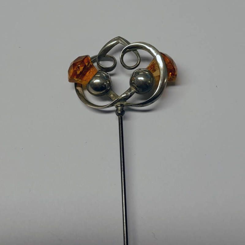 Art nouveau silver hat pin with twin faceted thistle decoration by charles horner chester 1911