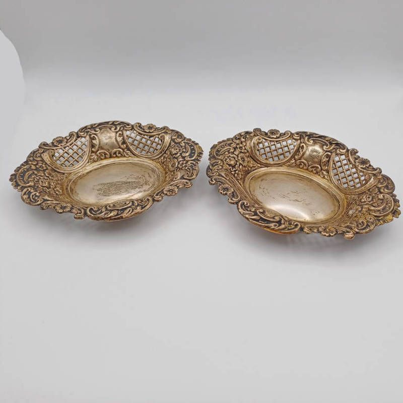 2 silver oval dishes with pierced work decoration, length 15cm, birmingham 1898